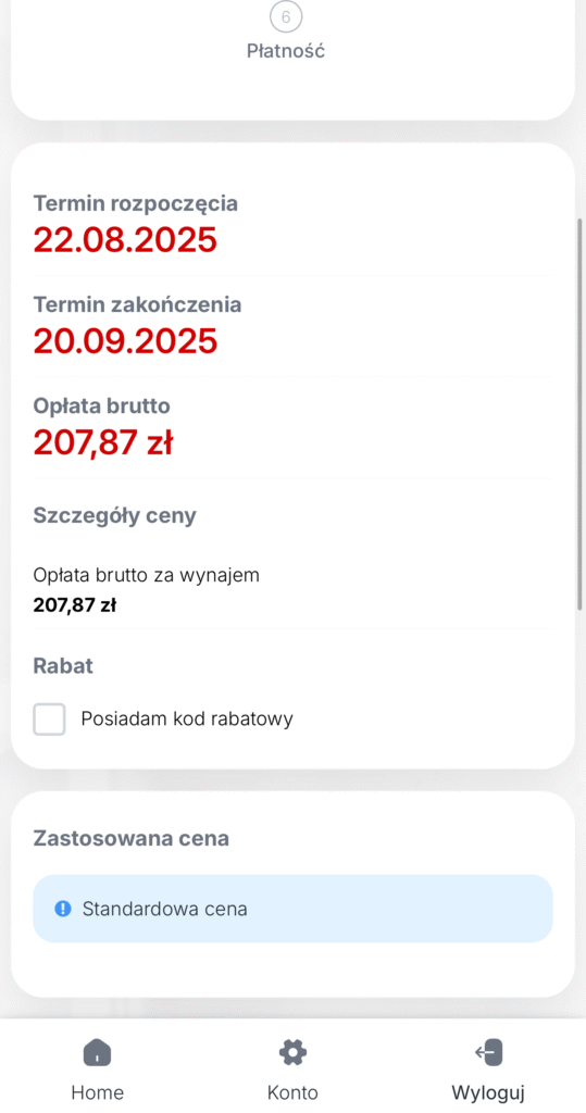 Wybierz metodę płatności (np. karta płatnicza, BLIK, przelew) i wprowadź dane. Po opłaceniu wynajmu otrzymasz potwierdzenie rezerwacji i wszystkie niezbędne informacje.