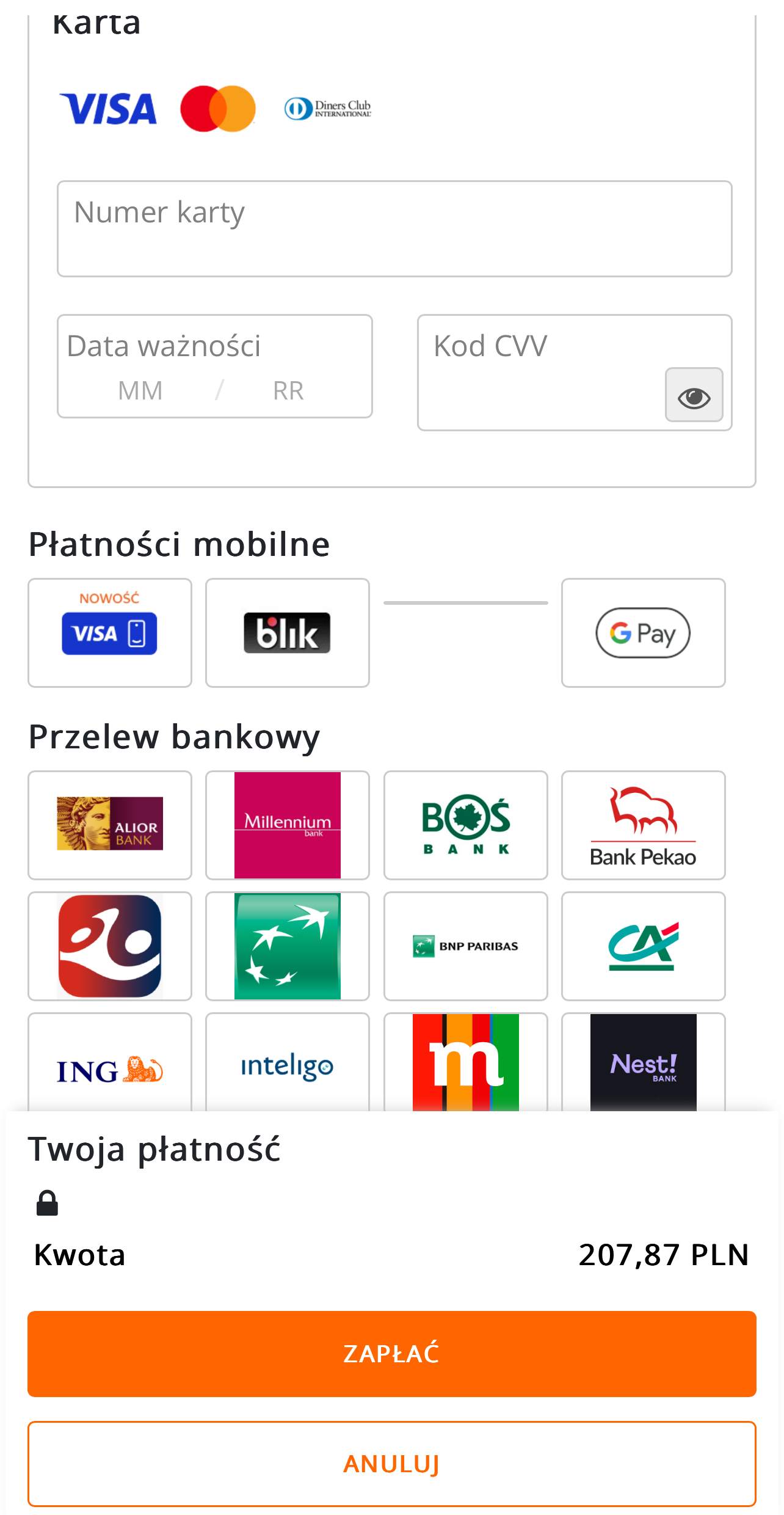 W takich sytuacjach należy skontaktować się ze swoim bankiem lub zajrzeć do aplikacji swojego banku. Prawdopodobnie masz wyzerowany limit transakcji internetowych (lub ustawioną zbyt niską kwotę). Wiele banków ze względów bezpieczeństwa wymaga również potwierdzenia płatności internetowej kartą w aplikacji mobilnej lub w systemie bankowości internetowej.